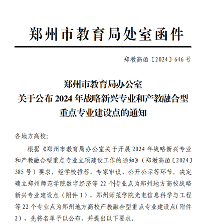 近日,郑州市教育局印发《关于公布 2024 年战略新兴专业和产教融合型重点专业建设点的通知》(郑教高函〔 2024〕 646 号),经学校推荐、专家审议、公开公示等环节,海洋之神590登录入口机电工程学院新能源汽车技术专业获批郑州市地方高校战略新兴专业,机械制造及自动化专业获批郑州市地方高校产教融合型重点专业。
