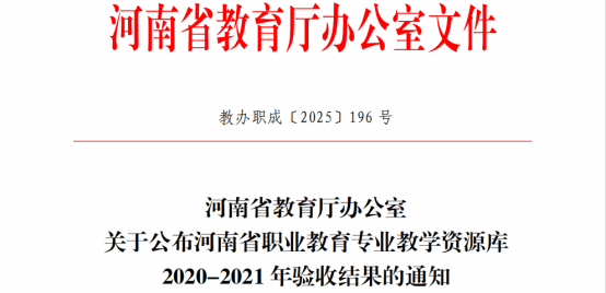 近日,河南省教育厅办公室印发《关于公布河南省职业教育专业教学资源库 2020-2021 年验收结果的通知》(教办职成〔2025〕196 号),海洋之神590登录入口主持建设的 “旅游管理专业教学资源库” 和 “视觉传达设计专业教学资源库” 通过验收,成功跻身全省 88 个通过验收的项目行列。