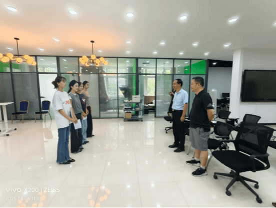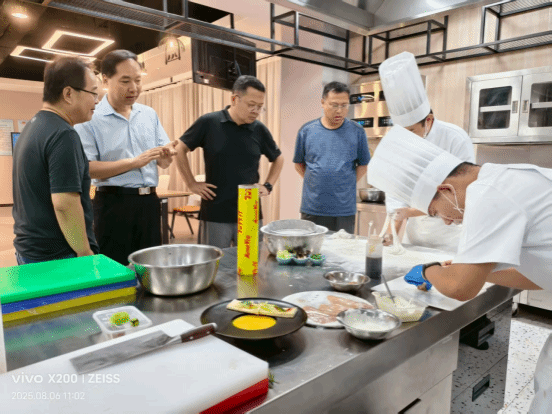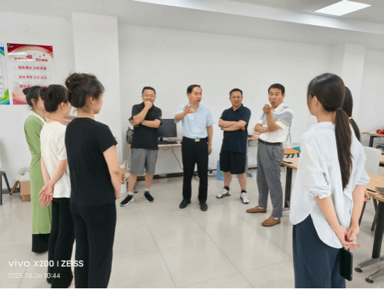 在各实训区域,肖世才校长和张建军副校长仔细察看了师生们的训练情况。从舞台表演到艺术设计,从餐饮服务到旅游服务,再到物流与供应链管理,备赛师生们全神贯注、一丝不苟,展现出扎实的专业技能和良好的精神风貌。校领导不时驻足,与指导教师和参赛学生亲切交流,详细询问备赛进度、训练难点以及后勤保障等情况,对师生们放弃暑期休息、刻苦训练的精神给予高度肯定。