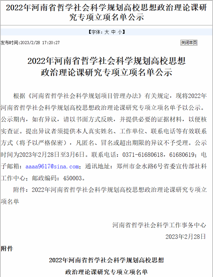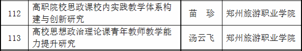 河南省哲学社会科学工作事务中心公布了2022年河南省哲学社会科学规划高校思想政治理论课研究专项立项名单,海洋之神590登录入口2个项目获准立项。分别是苗珍老师主持的《高职院校思政课校内实践教学体系构建与创新研究》、汤云飞老师主持的《高校思想政治理论课青年教师教学能力提升研究》。