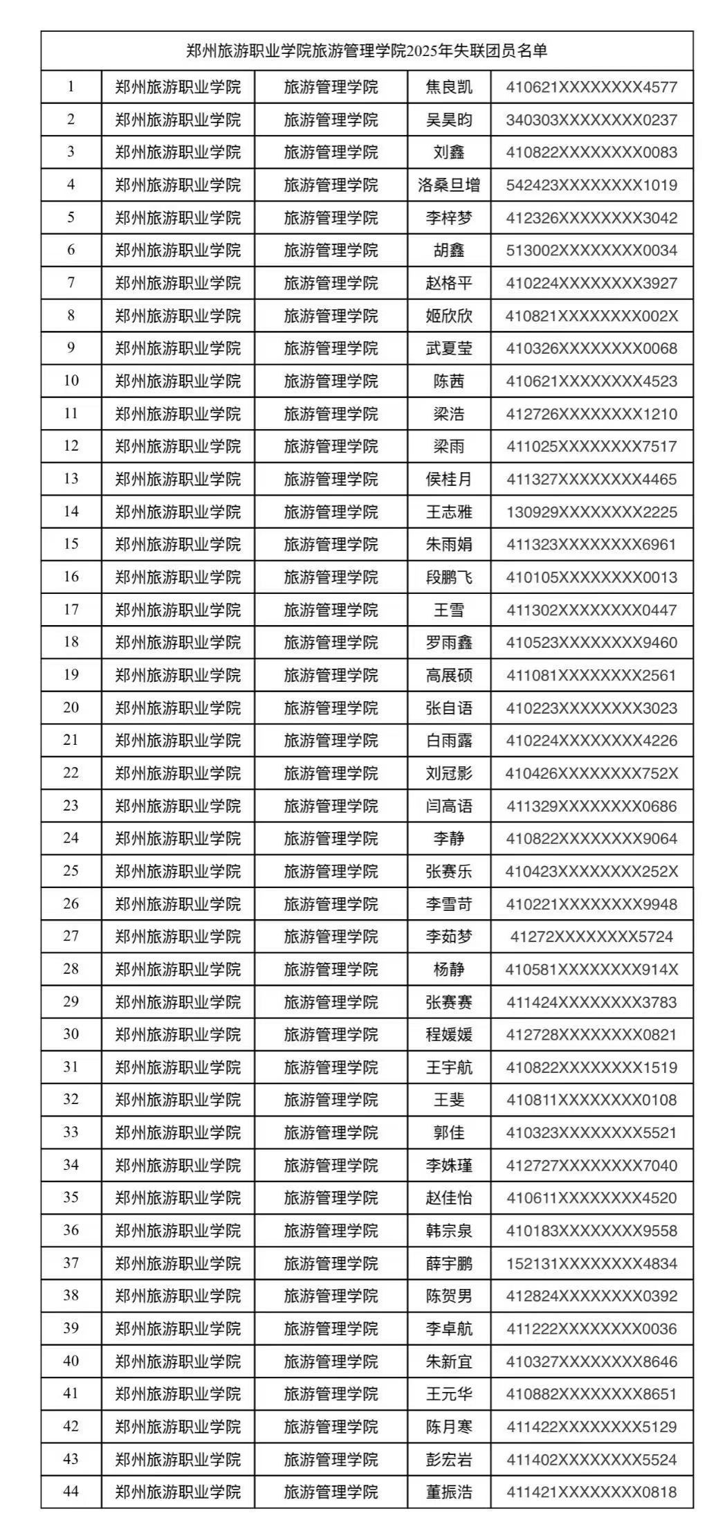 具体名单详见附件《海洋之神590登录入口旅游管理学院2025年失联团员名单》。