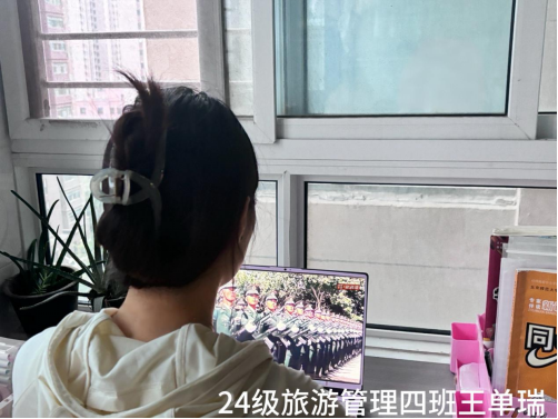 铁流滚滚,鹰击长空,今日上午的天安门广场上,纪念中国人民抗日战争暨世界反法西斯战争胜利80周年大会隆重举行,令我热血沸腾,思绪万千。一面面功勋战旗掠过屏幕,我不禁想起在红色文化与旅游课程中学到的抗战故事——年轻战士们以血肉之躯捍卫家园,民众万众一心支援前线。作为一名研学专业的学生,我深知这场阅兵不仅是一场盛典,更是一堂生动的“行走的思政课”。80年前,中国人民经过14年浴血奋战、付出伤亡3500万人的沉重代价,夺取了抗日战争的伟大胜利。作为新时代青年,我深刻体会到“国无防不立,民无防不安”的历史训诫。我们今天的和平幸福,是无数先烈用鲜血和生命换来的。未来,我将传承红色基因、弘扬抗战精神,将这份爱国情怀融入专业学习,设计出更多富有教育意义的研学课程,让抗战精神在新时代绽放光芒。吾辈青年,当以青春之力为祖国发展贡献力量,方能不负先烈,不负时代。