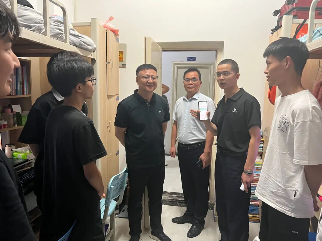 新学期伊始,为扎实推进 “一站式” 学生社区育人阵地建设,筑牢 “思想引领 + 专业赋能 + 安全保障” 三位一体的育人防线,9 月 7 日学生返校当晚,我院院长黄安定、党总支书记陈海彬、党总支副书记张楗让带领全院学工队伍深入学生社区,开展 “暖心走访 + 精准服务” 期初专项工作,以实际行动为学生新学期成长保驾护航。