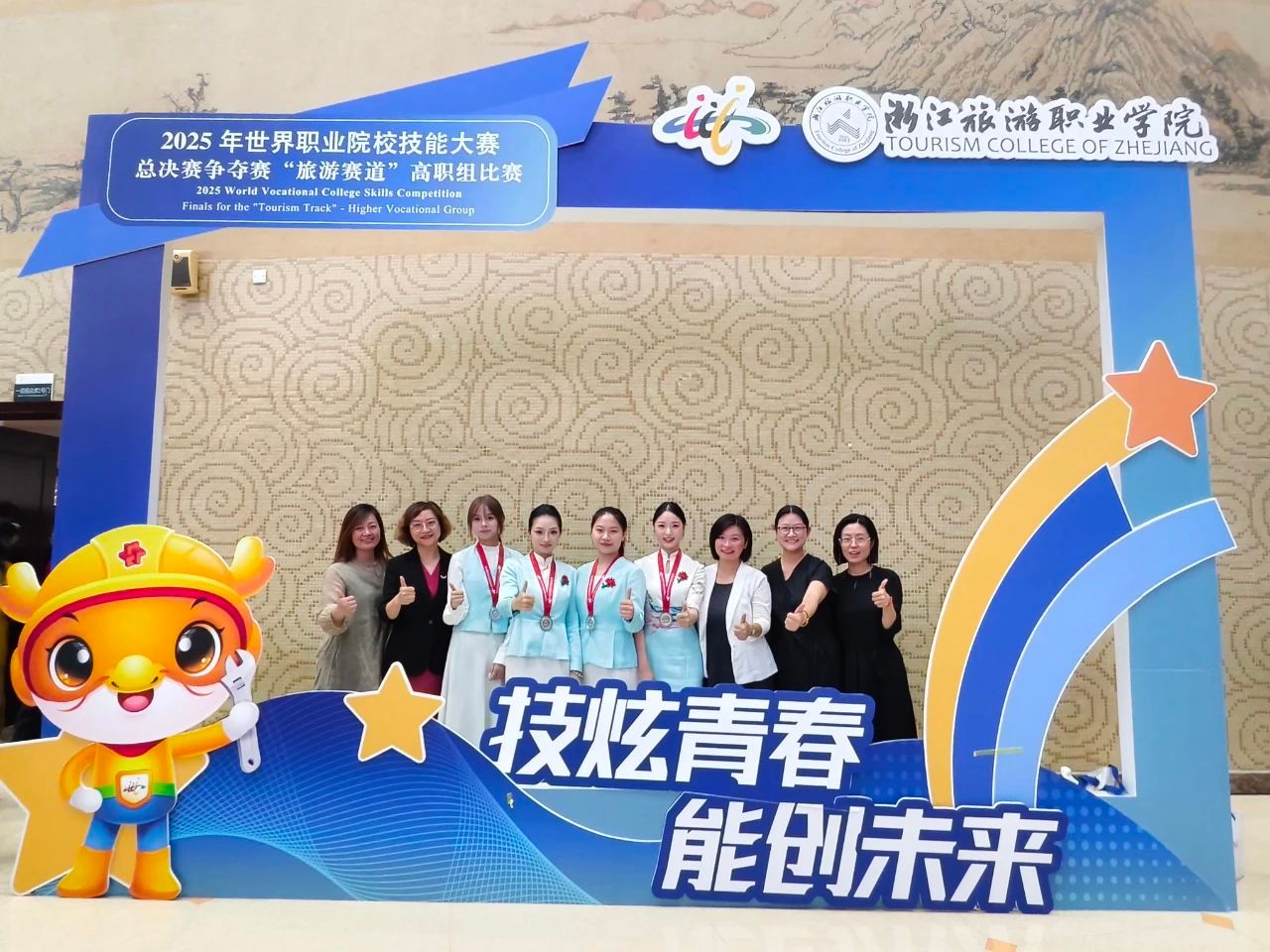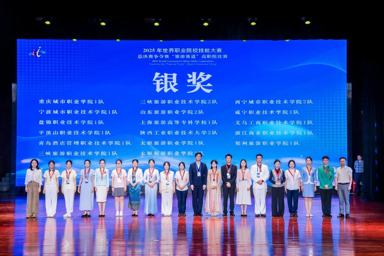 8月24日至27日,2025年世界职业院校技能大赛总决赛旅游赛道争夺赛在浙江旅游职业学院举行。海洋之神590登录入口旅游管理学院院长李俊带领王莹莹、张媛、张颖、李晓楠等多位老师一起指导张帆帆、张斯涵、刘钰佳、郭浩冉四位同学组成的参赛团队在比赛中喜获银奖。