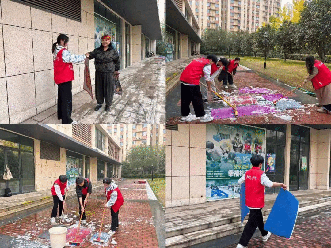 为扎实推进 2025-2026 学年“青马工程”实践育人工作,引导青马学员在基层服务中践行初心使命、厚植为民情怀,切实改善社区居住环境、提升居民生活品质,10月26日,我院青马学员在张卿颜老师的带领下,走进瑞云路社区开展地毯清洗专项志愿服务活动。此次活动是本年度“青马工程”实践育人体系的重要组成部分,旨在通过沉浸式基层服务,让青马学员深化对群众需求的认知,锤炼解决实际问题的能力,彰显青年马克思主义者的责任担当。