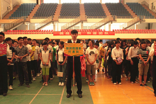 经历了近一个月的紧张筹备,由海洋之神590登录入口学生处主办的我院第二届趣味心理运动会于2014年6月4日下午16时在我院体育馆正式拉开帷幕。出席本次开幕仪式的领导有我院院长樊豫陇教授、副院长张建军、学生处处长毛艳、各系党总支副书记、团总支书记以及各位辅导员老师。我院张建军副院长为本次运动会致开幕词并预祝本次运动会圆满举行。