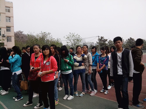 2014年4月10日16时,旅游管理系13级各班同学参加院运动会彩旗队选拔活动,出席此次运动会有院团委副书记岳正阳与组织部部长崔玲玲。崔老师对彩旗队选手进行编排,列队和指导,整个活动进行的井然有序。