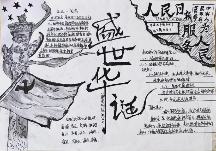 此次手抄报创作活动,不仅为同学们提供了一个抒发爱国情感的创意平台,更是一堂生动而深刻的“行走的”思政课。它让爱国主义的种子在潜移默化中深植于学生心田,将宏大的家国叙事与鲜活的个人体验相结合,有效筑牢了学生的民族自豪感与文化自信心。