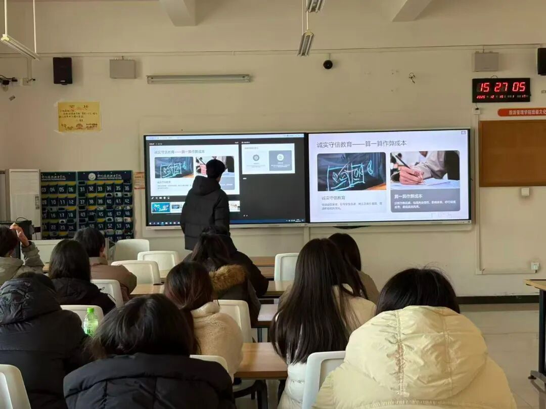 为进一步强化同学们的品德修养、法治意识与行为规范。12月15日至16日我院组织召开第十五次主题班会,此次班会围绕诚实守信教育,礼仪礼节教育这两大主题召开,由各班班主任主持,全体同学共同参与。