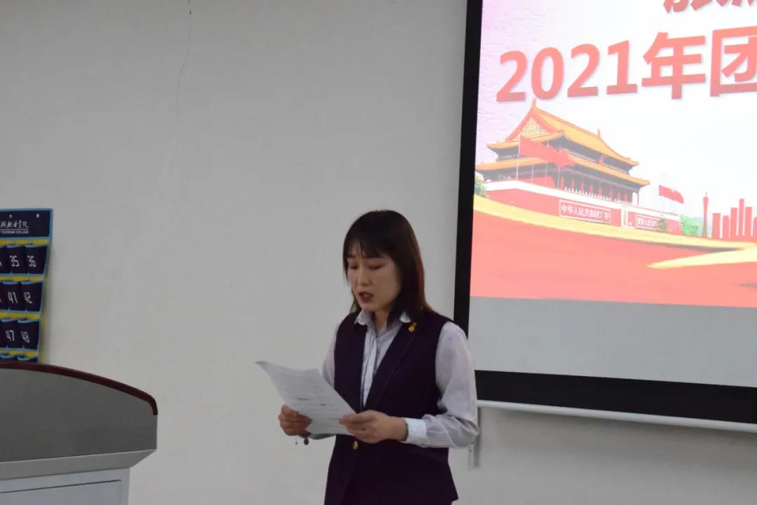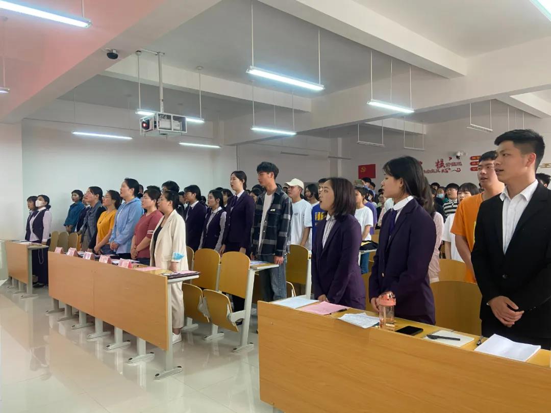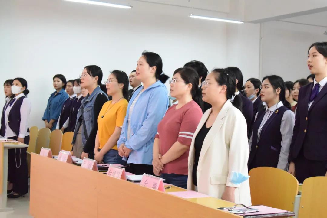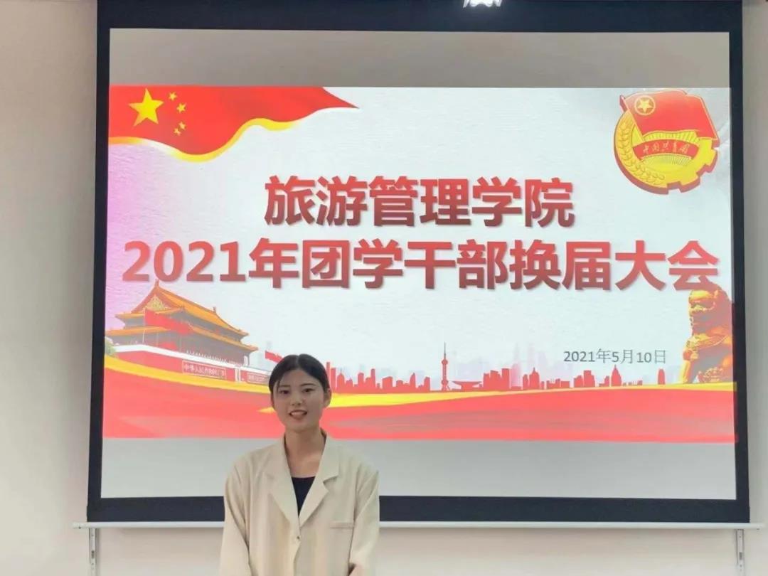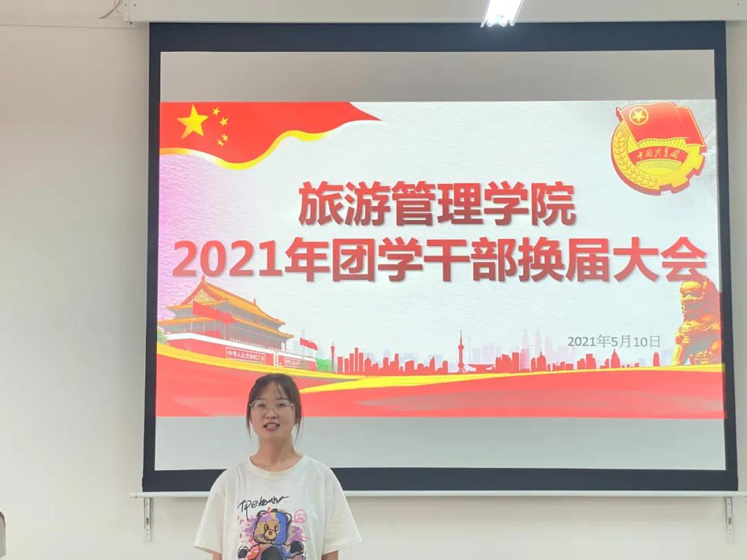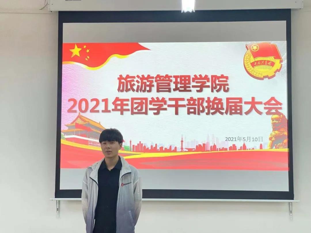 2021年5月10日下午,旅游管理学院2021年团学干部换届大会在5A502教室顺利召开。学院团总支书记金慧慧和全体辅导员老师出席大会,新老团学干部、各班学生代表参加本次大会。大会由学生会副主席蔡旭阳主持。