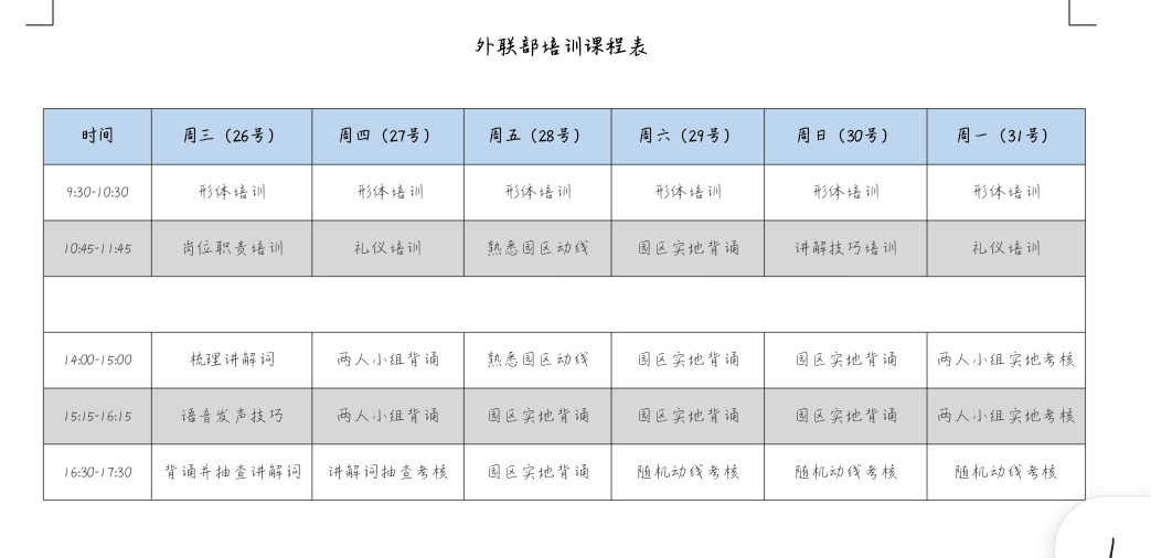 在开城前我们需要做许多准备工作,外联部经理吴迪女士针对工作需要。为我们开设了相应课程,其中有形体培训、语言发音技巧等等。我们还有个最重要的任务就是讲解词。