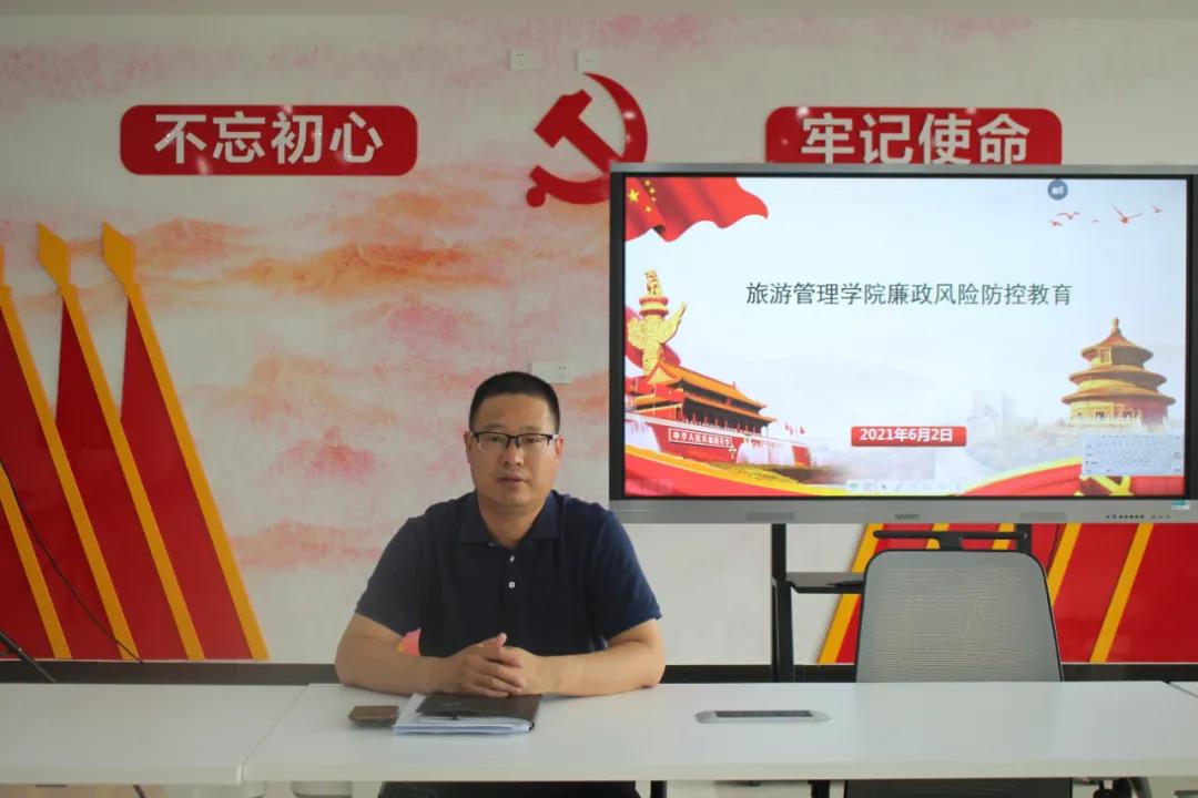 6月2日下午,旅游管理学院廉政风险防控教育专题会在党史文化馆开展。党总支书记秦合岗出席会议。全体党员教师参加会议。
