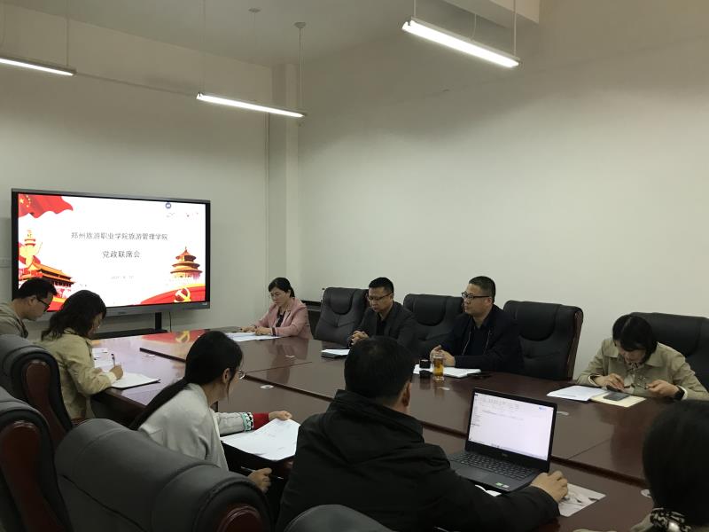 2021年4月12日下午1:00,旅游管理学院党政联席会在5号楼A401会议室召开。党总支书记秦合岗,院长李俊,党总支副书记张楗让,副院长张东月,团总支书记金慧慧参加会议。办公室主任刘海涛、党支部书记郑艳平以及各教研室主任列席会议。会议由秦合岗主持。