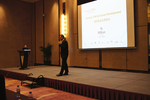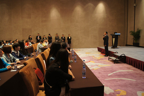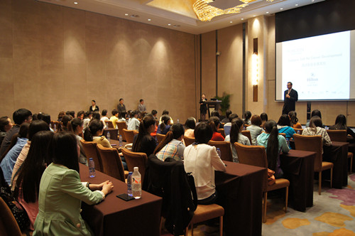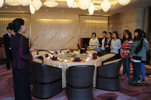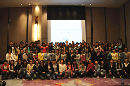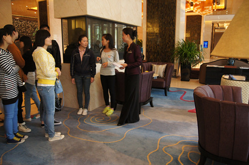 2014年4月8日下午14时,我院旅游管理系、酒店管理系共85名优秀实习生毕业生在旅游管理系党总支副书记张笃川、辅导员戚丁钒、丁铨铨的带领下,前往位于郑州市金水路曼哈顿广场的郑州希尔顿大酒店,参加由其主办的海洋之神590登录入口优秀实习生团聚会。会议伊始,郑州希尔顿大酒店总经理Max先生就以风趣幽默的方式为大家介绍了希尔顿酒店集团的发展史,并结合自己的亲身经历给大家的就业方向做出指导。接着,郑州希尔顿大酒店培训总监Molly女士、营销总监袁总监也以PPT的方式给即将踏上工作岗位的同学们提出关于职业定位的建议和意见,并从心态、个性等方面做出分析,鼓励大家充满热情的开展工作,充分发挥自己的天分,做好自我分析,确立人生目标,积累经验,坚持到底。旅游管理系党总支副书记张笃川也在会议上发言,表示希尔顿酒店集团是一家国际化的大型酒店集团,我院系领导都十分重视与希尔顿集团的合作,并为我系优秀实习生毕业生能够加入希尔顿集团工作感到十分荣幸。会议结束后,由希尔顿方七位部门经理及工作人员带领学生参观郑州希尔顿大酒店,让学生对酒店内部结构、工作方式以及经营理念有了一个简单的认识,而同学们也纷纷表示非常期待加入希尔顿这个大家庭。