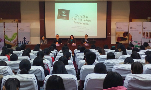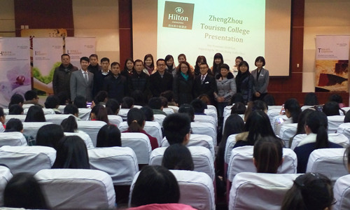 2014年12月3日下午14时,由旅游管理系主办的我院与郑州希尔顿酒店合作开展“希尔顿模拟培训班”于我院信息中心一楼举行开班仪式。出席本次开班仪式有我院教务处处长王庆华、旅游管理系主任胡华、副主任张冬月等院系领导以及郑州希尔顿人力资源副总监Swift Gao等贵宾。