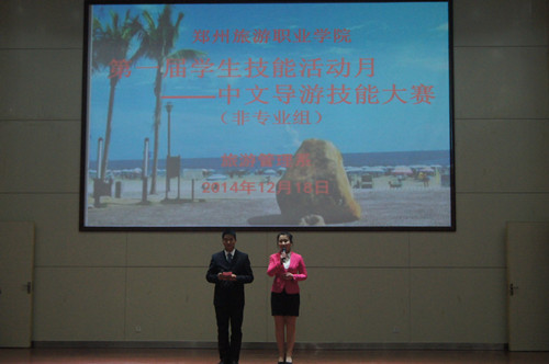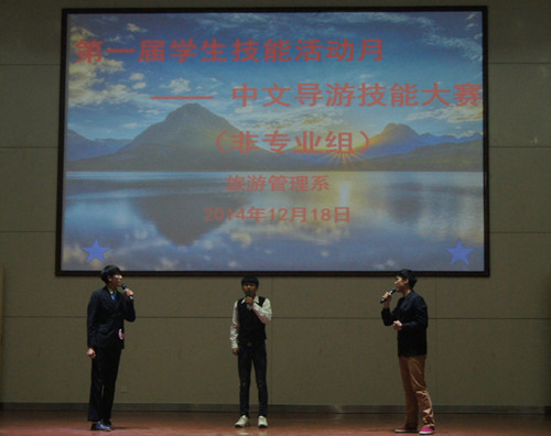 为丰富同学们的课余生活,加强各系部之间的交流学习。旅游管理系于2014年12月18日下午16:00在我院西报告厅举行了中文导游技能大赛业余组的比赛。我院学生处处长毛艳、院学生处副处长宋亚卿、旅游管理系党总支书记肖靖、党总支副书记张笃川、旅游管理教研室主任山衫、专业教师刘依依等各系团总支书记、专业老师出席此次活动并担任评委。