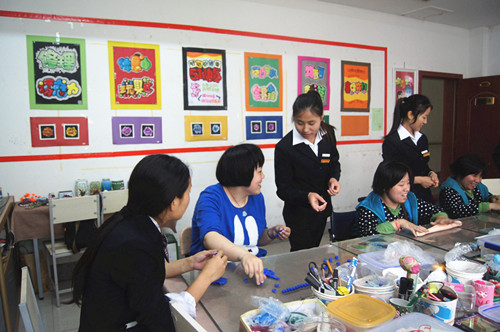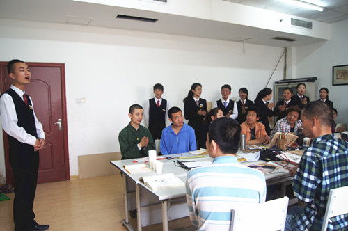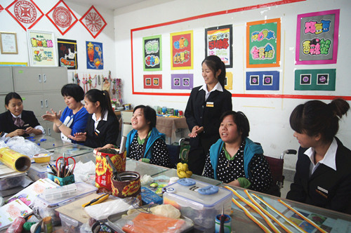 39名志愿者分为三队,进入工艺美术班、网络班和烙画班与康复中心学生进行了沟通交谈并展示了自己的才艺表演。河南电视台民生频道记者对团总支书记金慧慧、学生书记孙亚伟、烙画班老师及学生们进行了采访。金慧慧老师从贯彻落实学院群众路线教育实践活动反 “四风”、加强同学们学习沟通能力、传递正能量和引起社会对弱势群体的关注三方面阐释了青年志愿者志愿服务的意义。学生书记孙亚伟表示,通过旅游管理系志愿服务活动,同学们学会了感恩和奉献。烙画班老师及学生们也表示志愿者的到来带给了他们快乐和希望,并在此向志愿者表示了感谢。