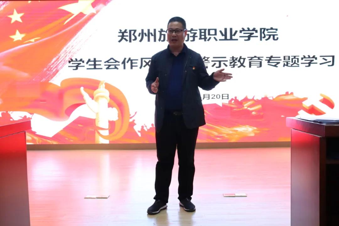4月22日下午,旅游管理学院学生会作风建设警示教育专题学习活动在5号楼云景点实训室开展。学院党总支书记秦合岗、团总支书记金慧慧出席活动。全院团学干部参加活动。活动由金慧慧主持。
