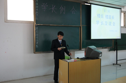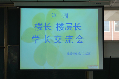 2014年3月5日中午12:00,旅游管理系学生会生活部在我院西教学楼301多媒体教室举办楼长、楼层长、学长交流会。本次会议对我系上一周的宿管工作做了简单总结,并希望各位楼长、楼层长、学长能够相互学习,取长补短,为我系的宿管工作的顺利展开尽最大努力;同时也希望各干部能够带领13级同学积极参与其中,为我院“学长制”工作的展开注入新的源泉。