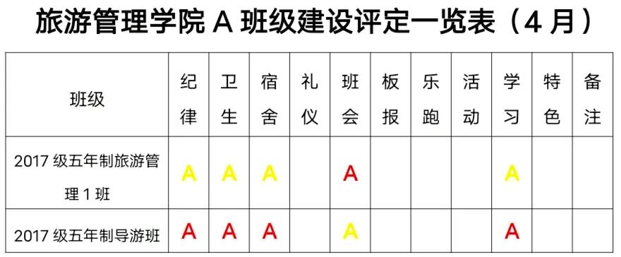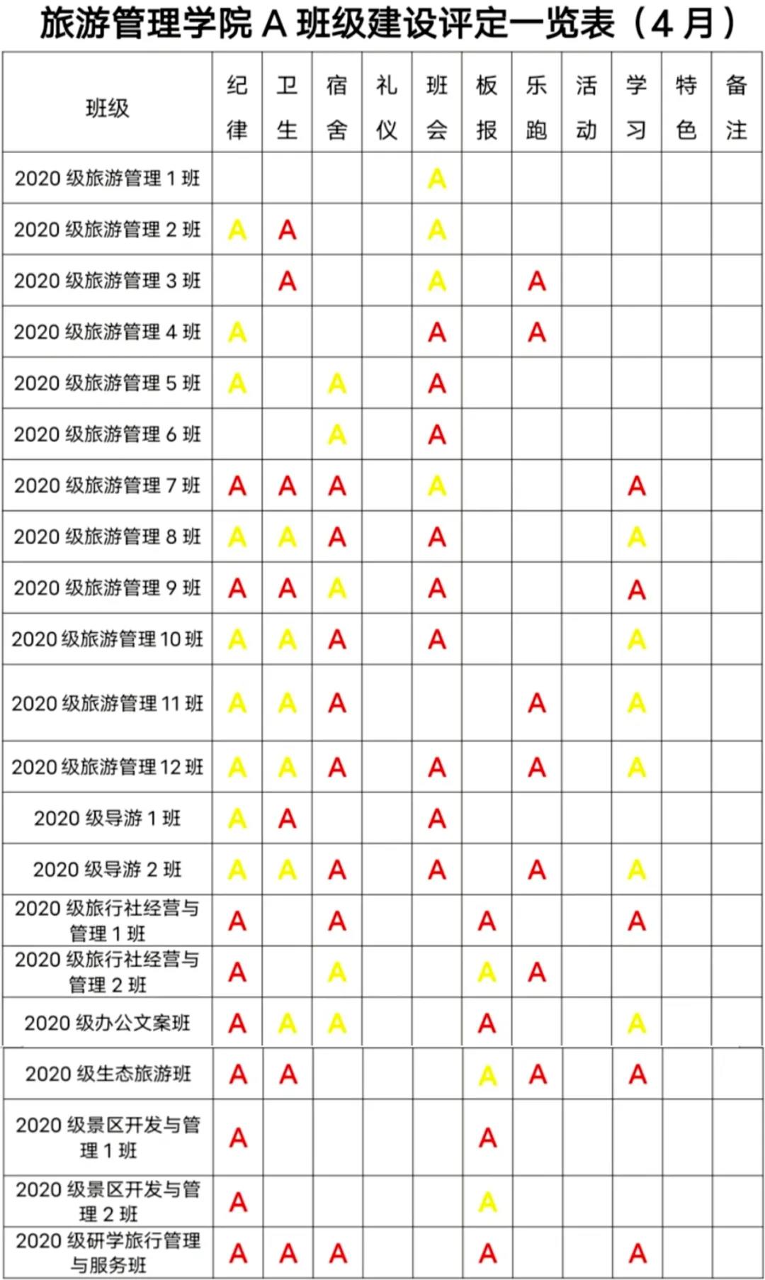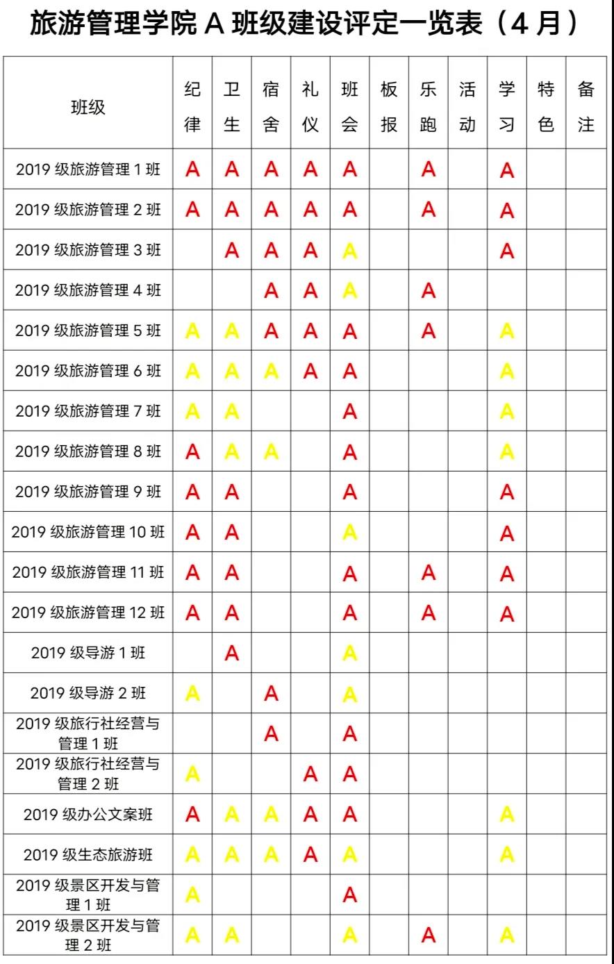 为进一步深化学院“三全育人”综合改革试点工作,贯彻学院“三全育人”工作要求,实现全方位育人。全面促进学生“三素养”教育不断提升,坚持立德树人,把培育和践行社会主义核心价值观落到实处;为培养学生的责任感、荣誉感、合作意识、奋斗意识和竞争意识,激发学生进取心,坚持以学生为本,把正能量融入学生教育、管理和服务的全过程。经研究,结合校院实际,参照A级景区评定规则,实施A级班级建设评定标准,由以往的上墙授牌转变为每月用微信公众号的方式推送,使学生学有榜样、赶有方向、比有对手、追有目标,为校院的可持续发展注入新动力!