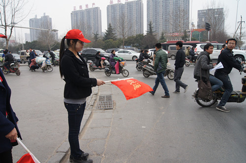 为提高文明城市创建水平,呼吁大家共同创建文明、有序、安全、畅通的交通环境,旅游管理系志愿者于2014年3月11日16时在航海路与未来路十字路口开展“志愿交通协管,我参与我快乐”志愿服务活动。