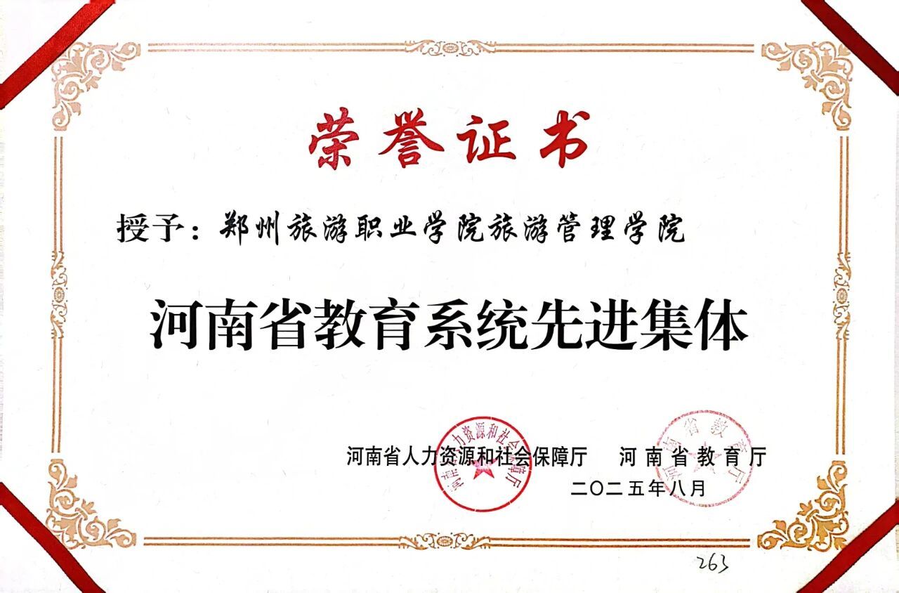 喜报丨海洋之神590登录入口旅游管理学院荣膺“河南省教育系统先进集体”称号