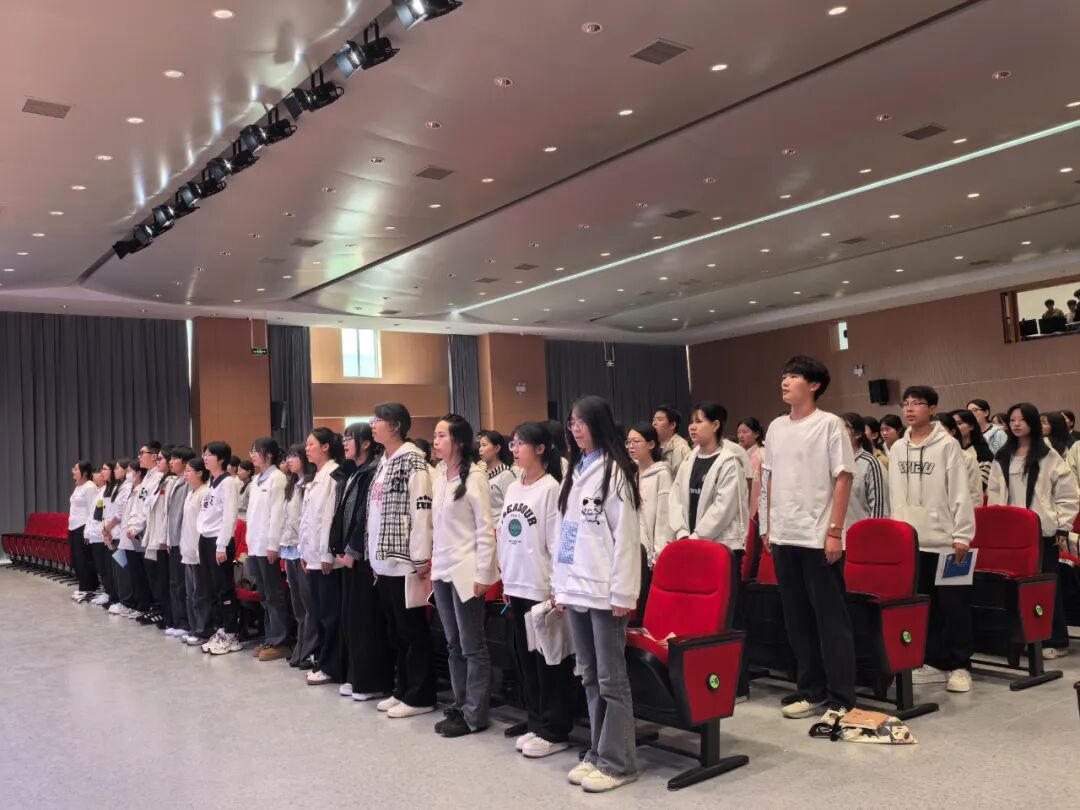 为激发青年学子的爱国情怀,传承中国精神,弘扬奥运文化,我院于10月15日在后勤楼报告厅组织开展2025年度新发展入团积极分子第一次团课培训,本次课程由团总支代书记张卿颜主讲,全体入团积极分子参加。