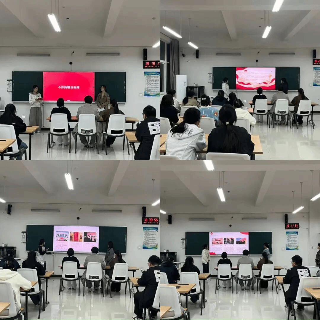 活动现场,各班学生代表怀着对红色历史的敬仰与思考依次上台,结合所选书籍畅谈体会、分享感悟。他们或回顾重大党史事件的深远背景,解读党的百年奋斗历程中所展现的智慧与担当;或深入挖掘革命先辈与时代楷模的精神内核,阐释共产党人的初心与使命。分享过程中,既有对经典片段的深情朗读,也有结合现实意义的深入剖析,真挚的情感与独到的见解赢得了现场师生的深切共鸣。