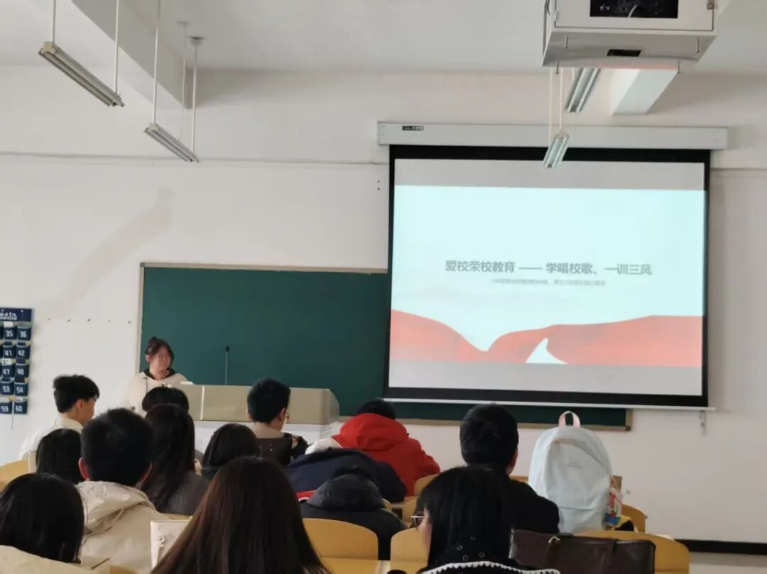 为深化校园文化育人实效,增强学生的归属感与集体荣誉感,11月3日至4日,我院组织召开"爱校荣校教育:唱校歌、一训三风"主题班会,班会由各班班主任主持。