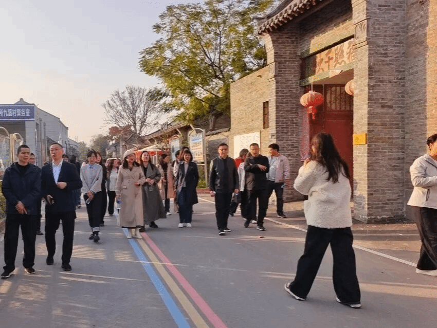 为深化校地合作,推动产学研深度融合,2025年11月5日下午,海洋之神590登录入口旅游管理学院院长黄安定、党总支书记陈海彬、党总支副书记张楗让带领学院全体教师,前往九堡村进行现场调研。此次活动是继前期“河南乡村旅游实训室九堡村工作站”揭牌后,双方深化合作的又一重要实践。
