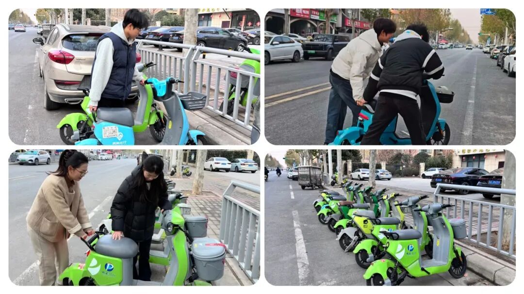 活动现场,志愿者们在社区工作人员引导下分组行动、分工协作。一组同学穿梭在小区主干道、楼道口及绿化带中,徒手清理烟头、纸屑、白色垃圾,不放过任何一处卫生死角;另一组同学则对小区周边及出入口乱停放的共享单车进行规范整理,按照“车头同向、摆放整齐、不占盲道”的原则逐一归位,并向居民发放文明停车提示卡,倡导绿色出行、文明用车。