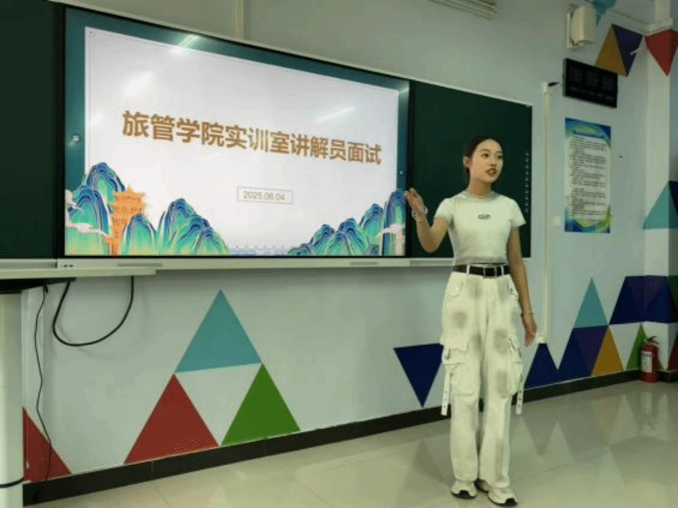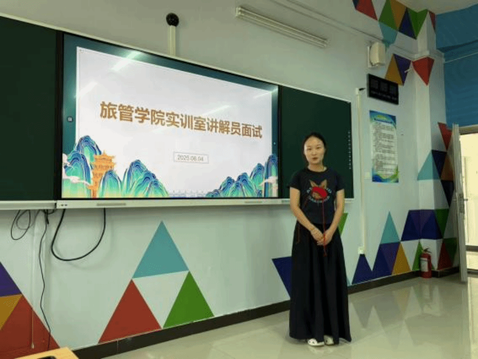 6月11日,通过初试的学子们迎来了更为关键的实地复试环节。复试地点设置在河南旅游实训室、智慧景区实训和研学旅行虚拟仿真实训室,模拟真实参观讲解场景。