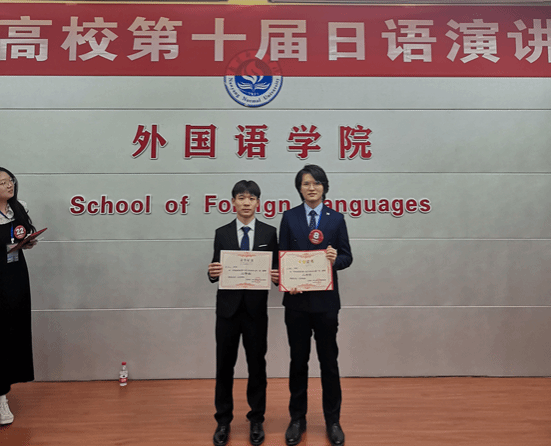 2022级学生黄学文、孙卓翔参加河南省大学生日语演讲赛,获得二等奖