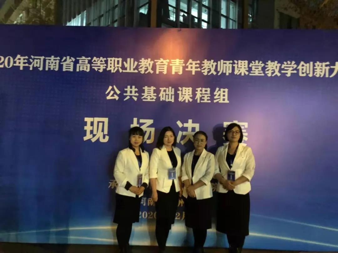 2020年12月,2020年河南省高等职业教育青年教师课堂教学创新大赛公共基础课程组决赛在河南经贸职业学院举办。我院《旅游英语》课程团队荣获一等奖。课程团队成员有徐慧、刘瑞娜、崔改丽和张凤琴四位老师。