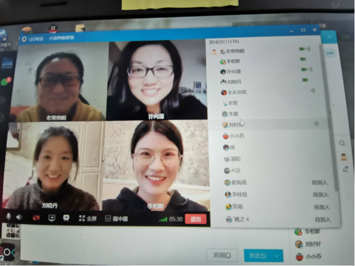 2020年2月26日周三下午,我系如期开展了每周一次的教研活动。这次不同于以往的是,采取线上教研。此次教研活动采取各分教研室单独召开,旨在分享目前线上教学活动心得,探讨如何优化课堂教学效果。虽然是在线教研,大家讨论热情高涨,视频会议更是笑声不断。经过分享和讨论,大家对目前的线上教学平台和直播工具有了更好的认识,学习到了更多的操作技能。通过分享,大家对职教云平台、腾讯课堂和QQ屏幕分享的优缺点形成了共识。
