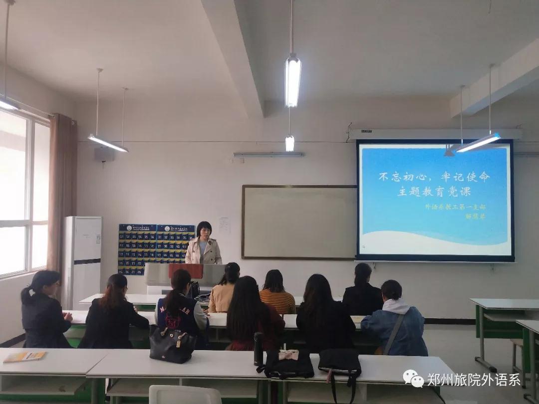 为扎实推进“不忘初心、牢记使命”主题教育,10月12日中午,旅游外语系教工一支部书记解慧琴老师以“党员教师的信仰与使命”为题,在4B301教室为支部教师党员上了一堂生动的党课。