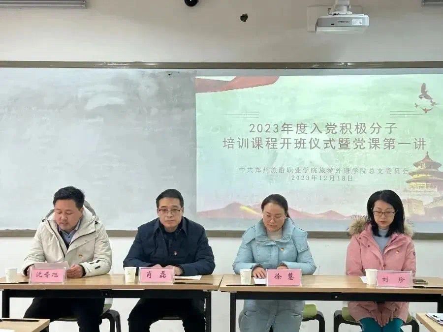 为加强入党积极分子的培养与教育,端正入党动机,做好发展党员工作,保证发展党员质量、提高党员队伍素质,旅游外语学院于12月18日在清源楼207教室举行2023年度入党积极分子培训班开班仪式。参加本次会议的人员有党总支书记肖磊、党总支组织委员徐慧、学生党支部书记沈晋旭、学生党支部刘珍老师以及入党积极分子,仪式由徐慧主持。