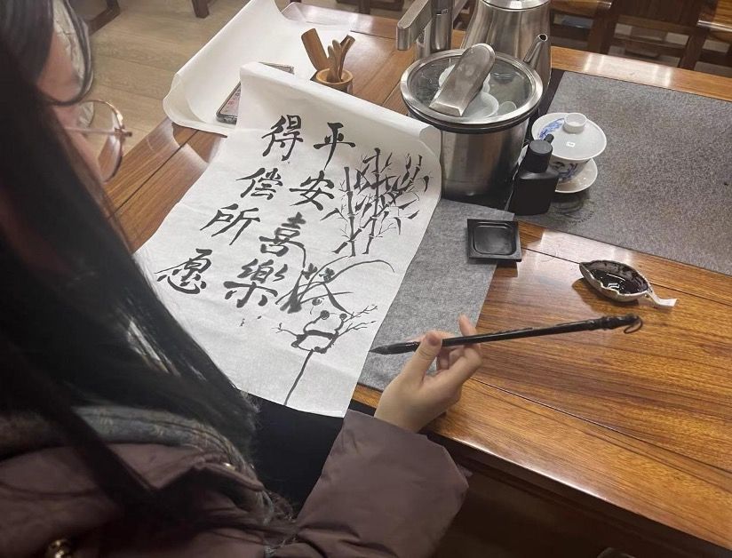 接着大家开展练习,互相交流心得,释放内心的情感和压力,达到心灵的宁静和寄托。大家沉浸于书法的世界中,获得了快乐和满足感。