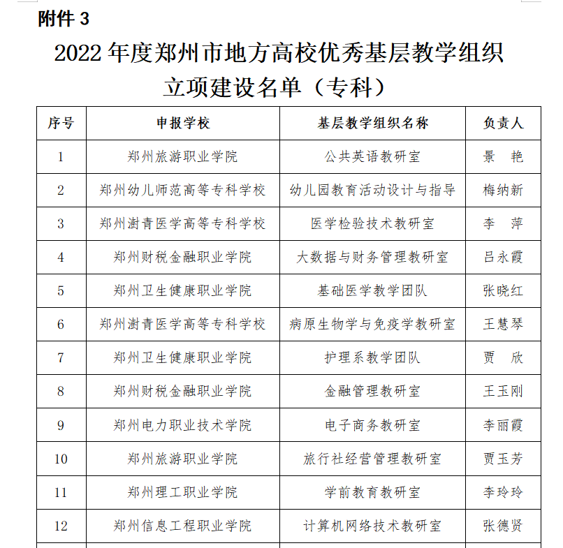 2023年1月28日,郑州市教育局公布了《郑州市教育局办公室关于郑州市地方高校优秀基层教学组织2020年度结项和2022年度立项评审结果的通知》(郑教高函〔2023〕43号),我院公共英语教研室获批立项2022年度郑州市地方高校优秀基层教学组织。