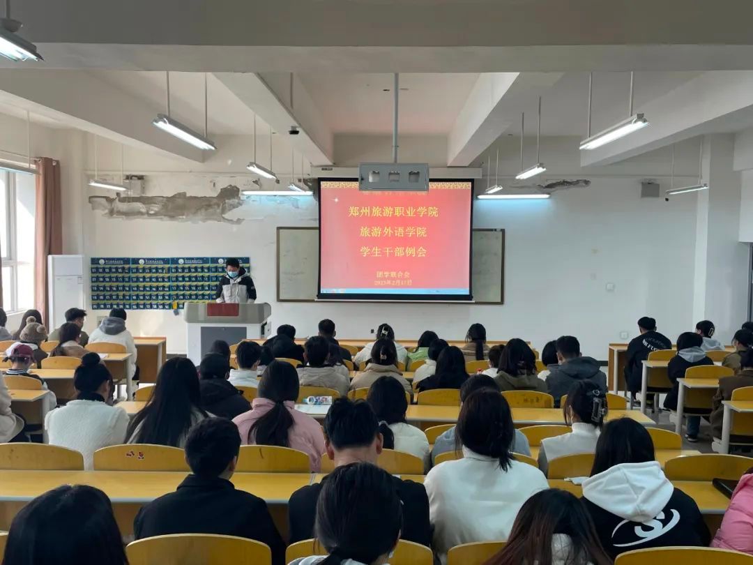 新学期、新目标、新起点、新征程。为进一步加强团学干部管理,保障春季学期开学各项工作顺利进行,2月17日下午,旅游外语学院在4B211多媒体教室召开了“凝心聚力勇担当 团结务实谱新篇”团学干部工作会议,会议由辅导员沈晋旭主持,全体团学干部参加。