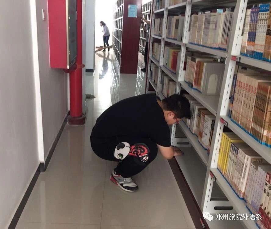 进入旅游职业学院图之后,17邮轮班分为两支队伍,一队协助图书管理员把归还的书籍进行分类整理,放到书架上,摆放整齐。另一队协助图书管理员做简单的清洁工作,打扫书架和地板。17国领一班的团支书带领本班学生,围绕象湖周边认真寻找人们随手丢弃的垃圾,通过一下午的努力,同学们把象湖周边的垃圾清理的干干净净。