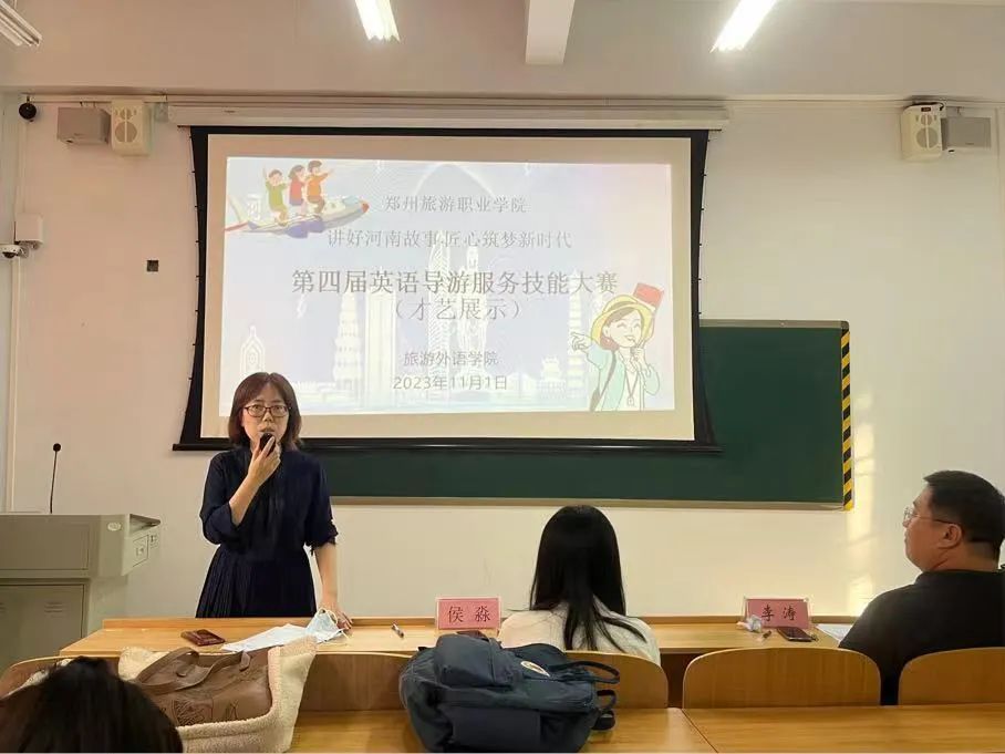 11月1日,海洋之神590登录入口旅游外语学院旅游英语教研室和公共英语教研室联合举办的第四届英语导游服务技能大赛在综合楼A座成功举办。比赛由崔改丽老师主持,评审团由李涛、张凤琴、崔骋堉、李思和侯淼老师组成。此次比赛分为三个环节:导游基础知识考核、英文导游词讲解和才艺展示,吸引了37名选手参与。