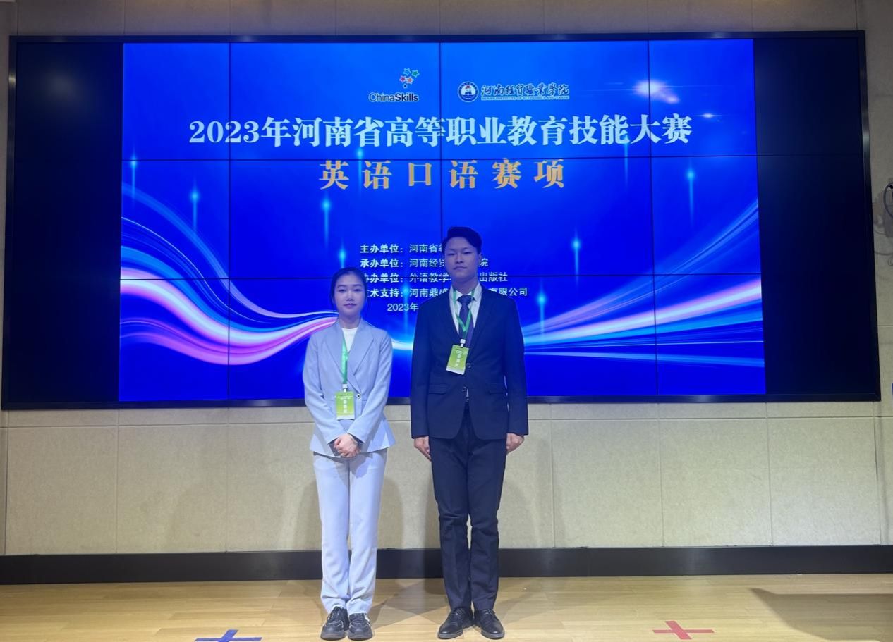 2024年8月下旬,在河南省教育厅公布的2023年河南省高等职业教育技能大赛获奖名单中,我院马潇老师指导武嘉爽同学荣获英语口语赛项(公共组)一等奖;蒋娟老师指导周雨彤同学荣获英语口语赛项(专业组)一等奖。