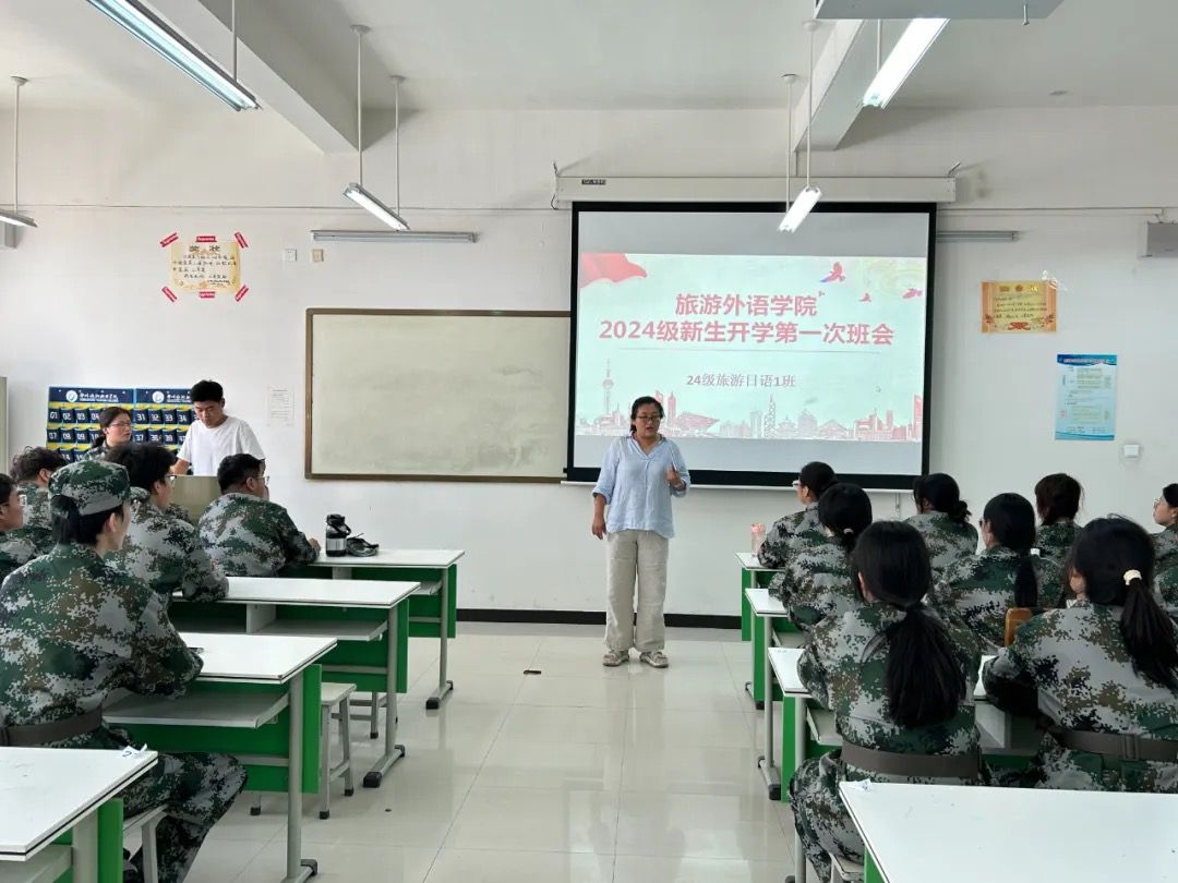 为积极推动24级新生新学期班风与学风建设,增强学生安全防护意识,为新学期注入满满活力,共同开启大学生活新篇章。旅游外语学院9月6日组织24级新生班召开开学第一课主题班会。旅游外语学院院长张贺玲、党总支书记肖磊、副院长张丽君、团总支书记刘晓丹深入各班,共同参与班会,了解新生情况。