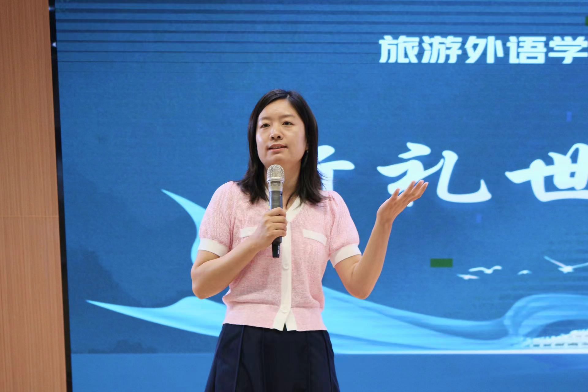 为培养新生的礼仪意识,提升综合素质,为未来的大学生活乃至职业生涯奠定坚实的基础,9月27日,旅游外语学院在后勤楼二楼报告厅开展2024级新生入学教育之礼仪礼节教育活动。旅游外语学院团总支书记刘晓丹以“行礼世界 语通天下”为主题开展教育,24级全体新生参与。