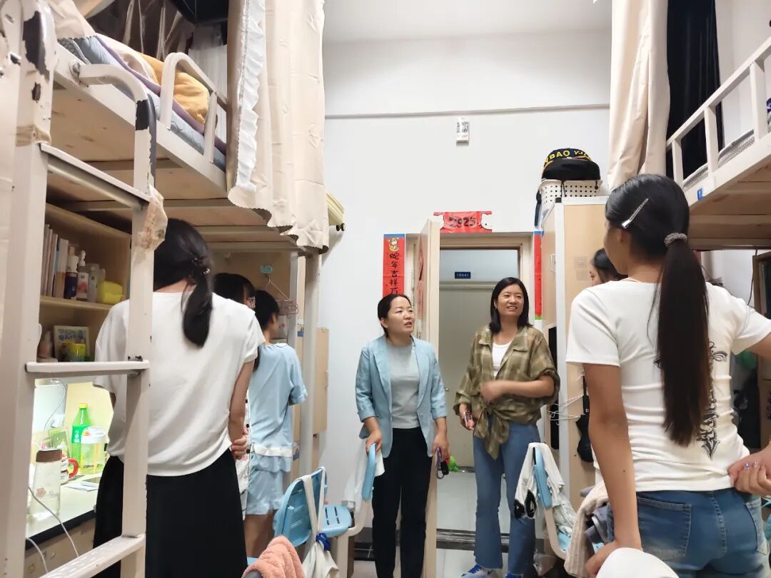 走访过程中,老师们与学生亲切交流,细致询问假期学习生活情况、返校行程安排,重点了解新学期学业规划与生活需求。针对学生提出的疑问,老师们现场耐心解答;同时鼓励同学们迅速调整作息节奏,以饱满的精神状态、积极的学习态度投入新学期各项任务,让返校学子在熟悉的宿舍环境中切实感受到家一般的温暖与关怀。