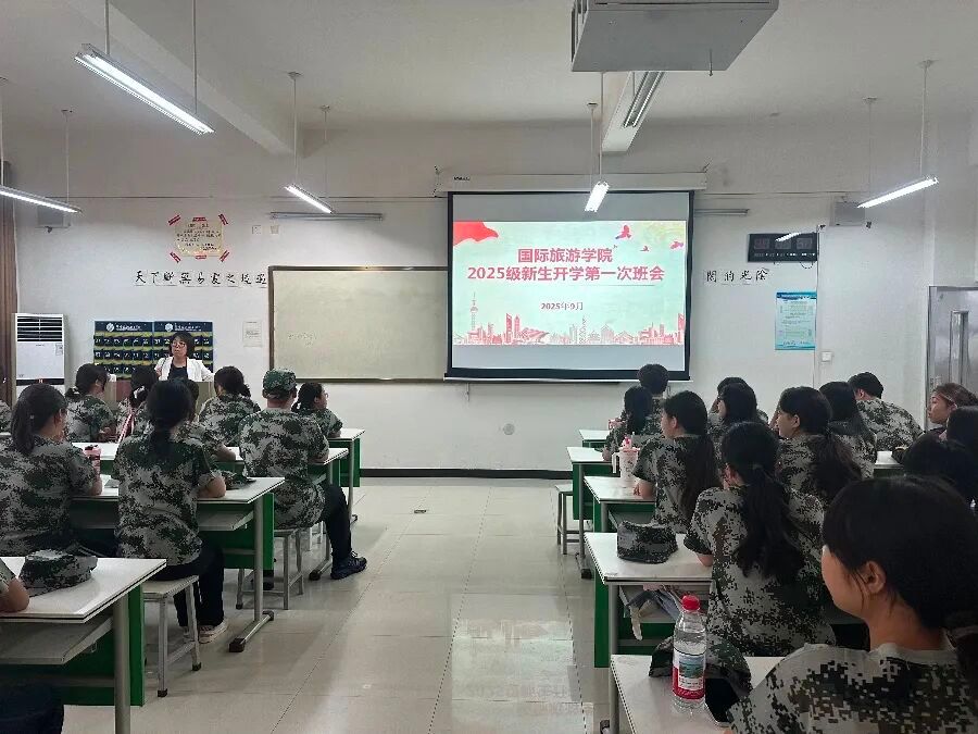 为助力2025级新生快速融入校园、培育优良班风学风,9月10日,国际旅游学院于清源楼开展2025级新生入学教育之“开学第一课”主题班会。学院党总支书记肖磊、副院长张丽君深入各班,与新生亲切交流,开启大学新征程。