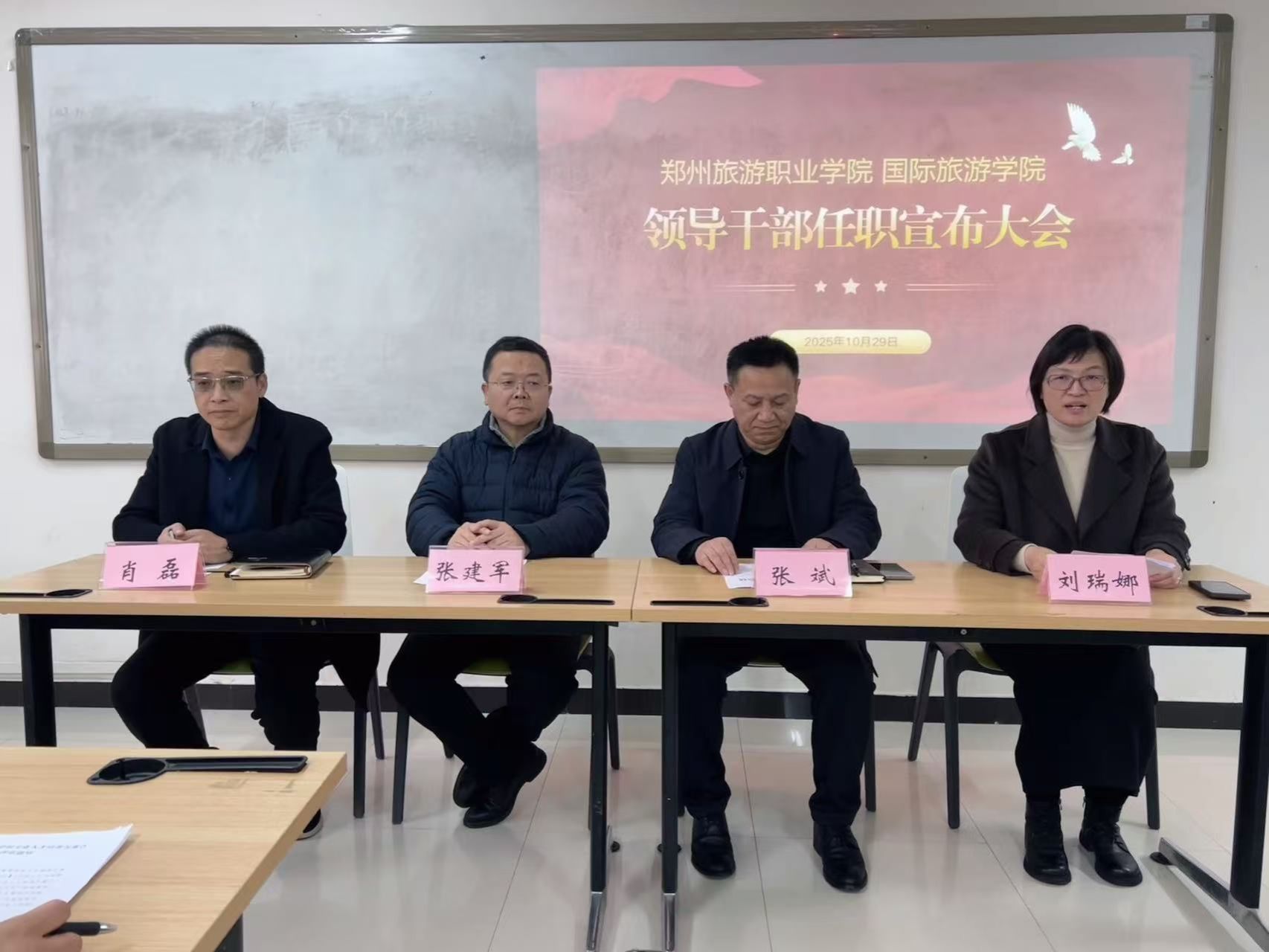 会上,张斌宣读了学校党委关于干部任免的决定,任命刘瑞娜为国际旅游学院院长。