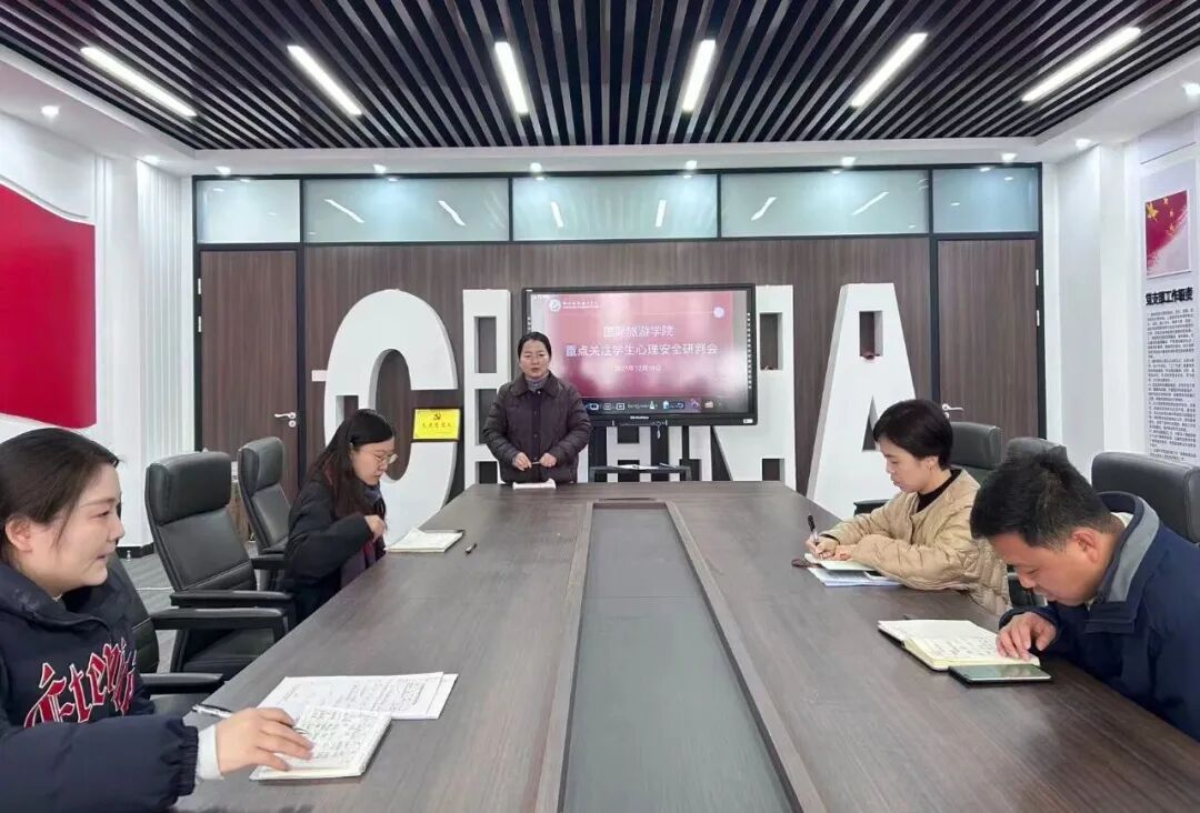为精准把握学生心理动态,筑牢校园心理健康防护网,12月10日,国际旅游学院在清源楼党员活动室召开学生心理安全专题研判会。学院党总支副书记韩晶、学工办代主任沈晋旭及全体辅导员参加会议,学院心理工作负责人刘平平主持会议。