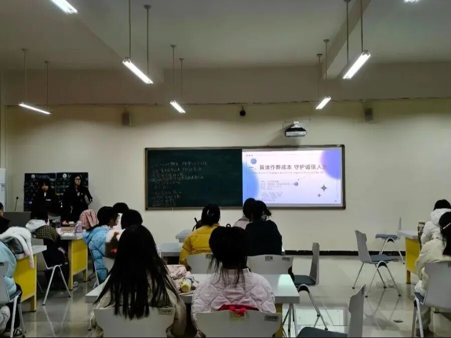 为强化学风建设,筑牢学生诚信根基,12月15日,国际旅游学院于清源楼组织2025级各班召开“诚实守信教育——算一算作弊成本”主题班会,全体同学积极参与。